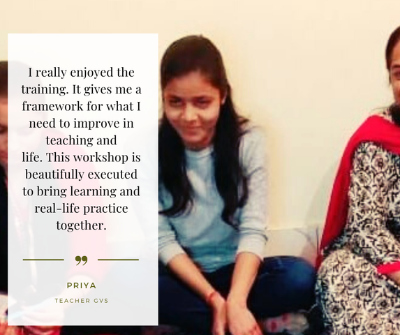 After need Assessment we plan the goal for school through the participatory methods with the primary stakeholders (students, school leader and teachers). Eventually, we build the capacity of teacher on building connection with the child, actualizing their own and child's limitless potential, building skills for effective communication, understating the leaner, understanding purpose of subjects and facilitating learning of particular subjects, managing and engaging the class.